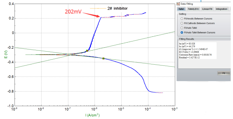 Fig 10. Tafel fitting result for 45# steel in inhibitor #2